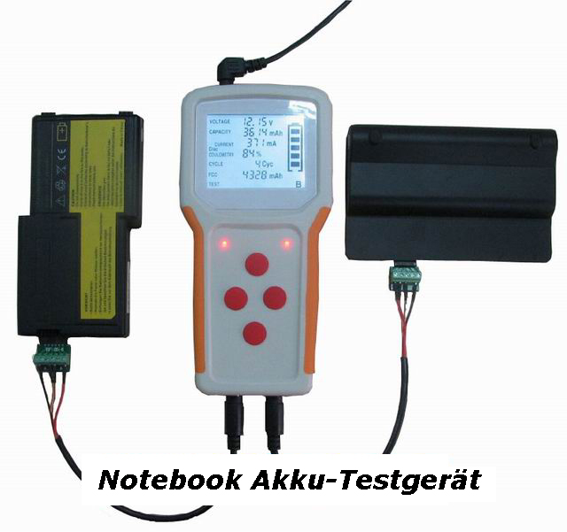 Wir können viele Notebook-Akkus mit unserem Spezialgerät testen, auch die neuen sehr flachen eingebauten Akkus.